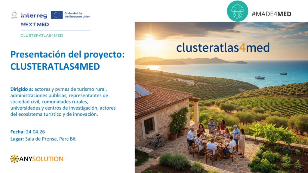 ClusterAtlas4Med fortalecerá la competitividad y digitalización de las PYMEs de turismo rural en el Mediterráneo. Mediante un modelo hub-and-spoke, ofrecerá servicios personalizados para afrontar los retos de la transición digital y verde, fomentando la colaboración entre entidades públicas, privadas y actores de I+D. Con 8 socios principales y 6 asociados de 7 países, el meta-clúster se convertirá en un punto focal para impulsar políticas de desarrollo local y un turismo rural más sostenible.